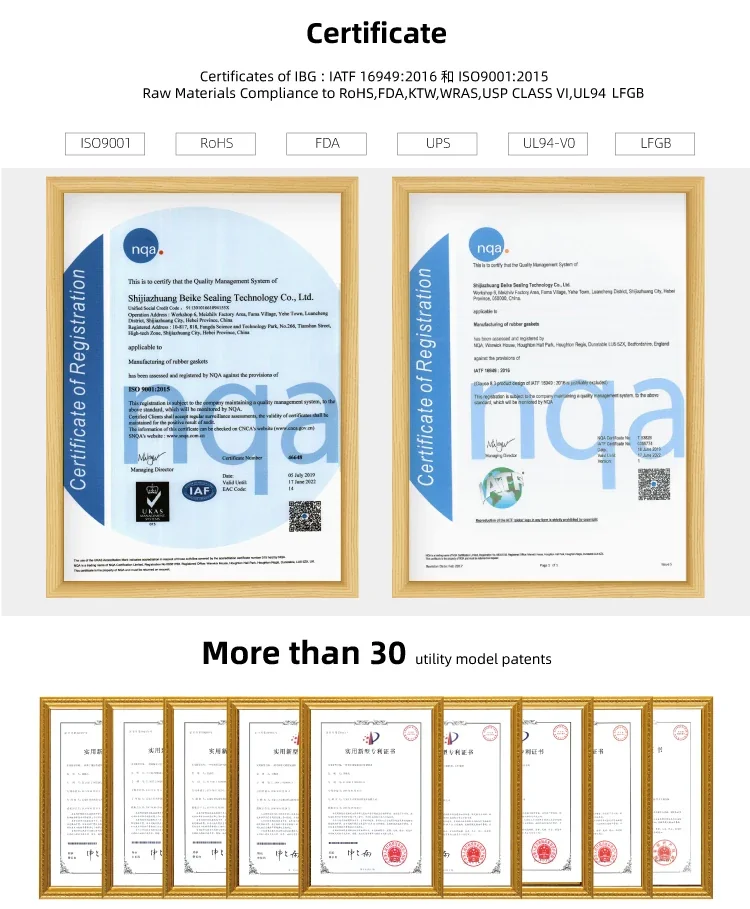 Shijiazhuang Beike Sealing Technology Co., Ltd. was established in 2007, and is a professional engaged in the research, development, sale and service. Our main products are Custom Rubber Parts ( rubber gaskets, rubber stoppers, rubber caps, rubber bellows), Standard Rubber Products( rubber o-rings, oil seal, rubber strip, X ring). Our products are mainly used in semiconductor, aerospace, automotive, household appliances, medical equipment and other industries, Specially developed a sealing ring with a temperature resistance of 300-400℃ for the high temperature diffusion furnace of the photovoltaic industry.